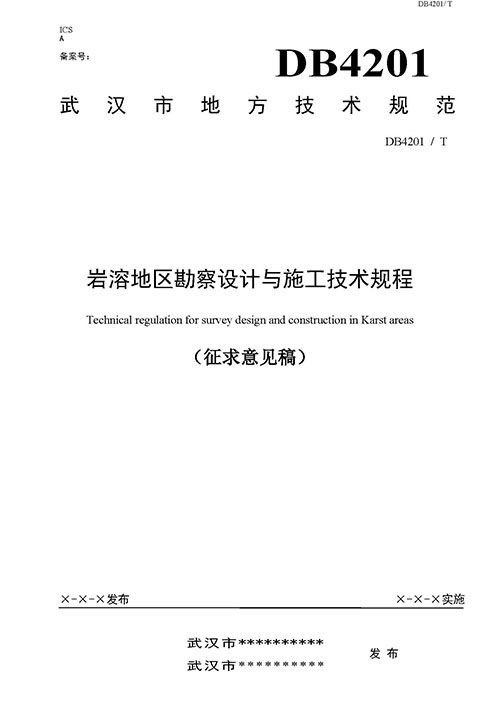 根據(jù)《市質(zhì)監(jiān)局關(guān)于下達(dá)2018年度武漢市地方標(biāo)準(zhǔn)制修訂項(xiàng)目計(jì)劃的通知綜合管理類(第二批)》(武質(zhì)技監(jiān)標(biāo)[2018]5號(hào))的要求,由武漢市勘察設(shè)計(jì)有限公司聯(lián)合相關(guān)單位共同起草的武漢市地方標(biāo)準(zhǔn)《巖溶區(qū)勘察設(shè)計(jì)與施工技術(shù)規(guī)程》(附件1)已完成征求意見稿。按照有關(guān)規(guī)定,現(xiàn)征求貴單位意見。請(qǐng)將意見填入對(duì)應(yīng)《征求意見反饋表》(附件2)并加蓋單位公章后,紙質(zhì)版(或掃描件)于2019年07月20日前反饋給武漢市勘察設(shè)計(jì)有限公司,逾期不復(fù)函,視為無意見。