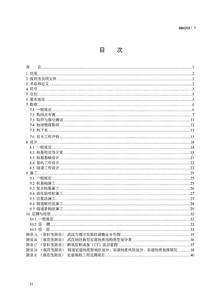 武漢市巖溶地區(qū)勘察、地基基礎(chǔ)設(shè)計(jì)與施工、監(jiān)測(cè)與檢驗(yàn)除應(yīng)符合本規(guī)程的規(guī)定外,尚應(yīng)符合國(guó)家、 省、市現(xiàn)行有關(guān)技術(shù)標(biāo)準(zhǔn)的規(guī)定。