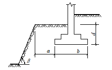 a ——基礎(chǔ)底面外邊緣線至坡頂?shù)乃骄嚯x(m); b——垂直于坡頂邊緣線的基礎(chǔ)底面邊長(zhǎng)(m); d——基礎(chǔ)埋置深度(m);