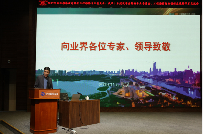 2019年11月5日上午,由武漢勘察設(shè)計(jì)協(xié)會(huì)工程勘察專業(yè)委員會(huì)、武漢土木建筑學(xué)會(huì)勘測專業(yè)委員會(huì)主辦,武漢市勘察設(shè)計(jì)有限公司承辦的“2019年武漢勘察設(shè)計(jì)協(xié)會(huì)工程勘察專業(yè)委員會(huì)、武漢土木建筑學(xué)會(huì)勘測專業(yè)委員會(huì)工程勘察行業(yè)創(chuàng)新發(fā)展暨學(xué)術(shù)交流會(huì)”在武漢市測繪院307學(xué)術(shù)報(bào)告廳舉辦。