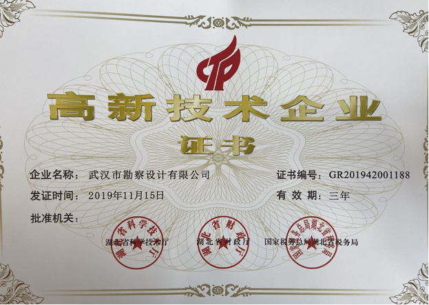 2020年7月8日,我司國(guó)家高新技術(shù)企業(yè)再認(rèn)證申報(bào)材料順利通過(guò)湖北省科學(xué)技術(shù)廳、湖北省財(cái)政局和國(guó)家稅務(wù)總局湖北省稅務(wù)局最終審核,再次取得了國(guó)家高新技術(shù)企業(yè)證書,為我司今后能夠順利承接各類建設(shè)工程項(xiàng)目提供了有力的保障。