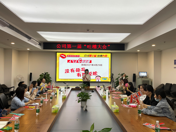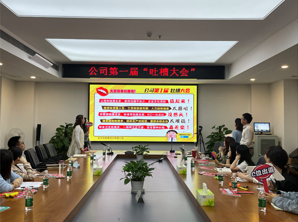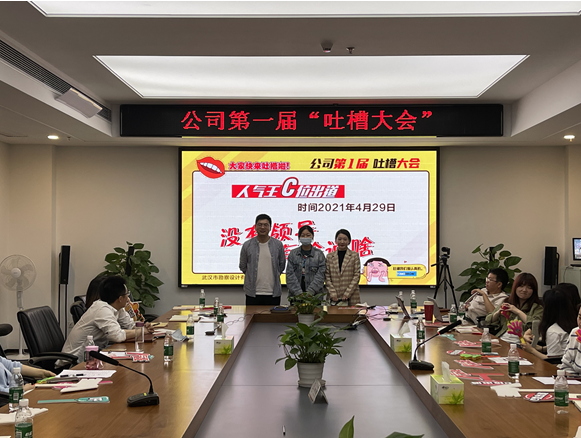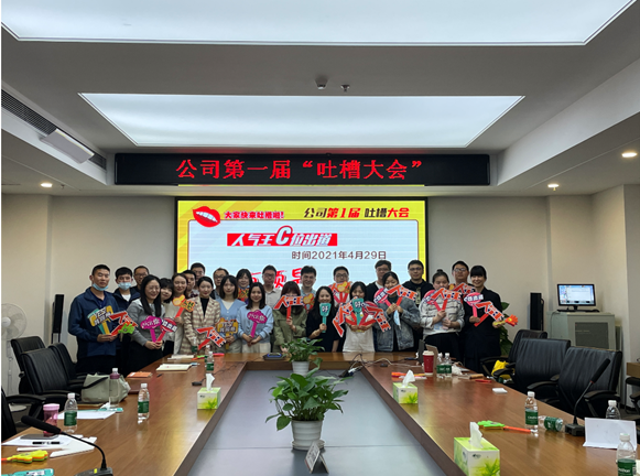 本次吐槽大會主要目的是加強公司職能部門與各生產(chǎn)部門之間的溝通交流,進一步發(fā)現(xiàn)工作中的問題,促進工作效率和工作管理水平的提升。為了本次吐槽大會開的更加接地氣,效果更佳,綜合部(黨群工作部)前期通過辦公云平臺(KC平臺)、意見箱匿名收集意見,各生產(chǎn)部門都進行了內(nèi)部槽點征集、吐槽代表選派和吐槽文稿撰寫,有的甚至幾易其稿。為了增強現(xiàn)場表現(xiàn)力,相關(guān)部門內(nèi)部還組織了頭腦風暴,并在網(wǎng)上搜集學習了吐槽技巧。