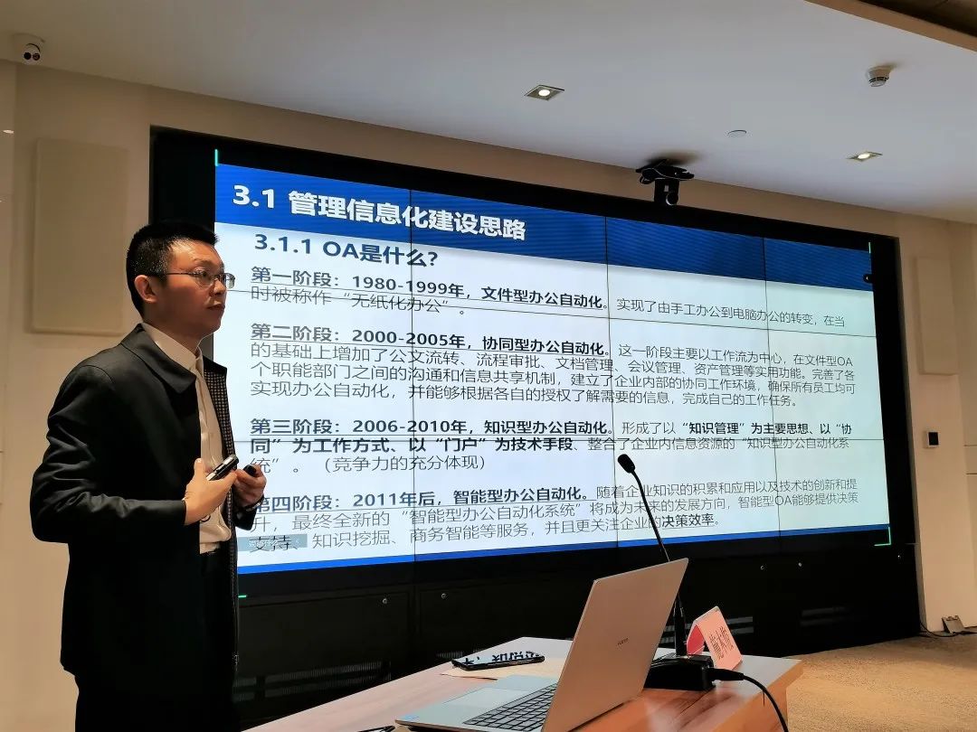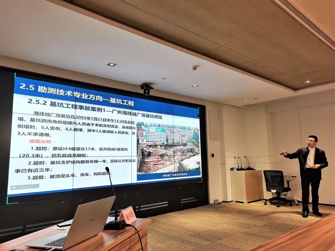 授課進(jìn)入尾聲時(shí),施木俊重點(diǎn)推介了公司在行業(yè)發(fā)展,企業(yè)管理上的優(yōu)勢(shì):在勘測(cè)與巖土工程專業(yè)領(lǐng)域,武勘公司能為工程建設(shè)項(xiàng)目的策劃階段提供最優(yōu)解,能精準(zhǔn)把控工程全過(guò)程風(fēng)險(xiǎn),實(shí)現(xiàn)項(xiàng)目風(fēng)險(xiǎn)、經(jīng)濟(jì)與時(shí)間相平衡;已積累的分布在武漢各地?cái)?shù)十萬(wàn)的鉆孔資料和已建設(shè)的數(shù)據(jù)管理平臺(tái),為項(xiàng)目開(kāi)發(fā)初期高效準(zhǔn)確進(jìn)行成本、工期預(yù)估提供了重要基礎(chǔ)資源;現(xiàn)有的智慧監(jiān)測(cè)平臺(tái)及自動(dòng)運(yùn)行的測(cè)量機(jī)器人讓項(xiàng)目建設(shè)與運(yùn)行維護(hù)一切盡在掌握;管理信息化更是成為了打破深井,為企業(yè)發(fā)展賦能的重要手段。