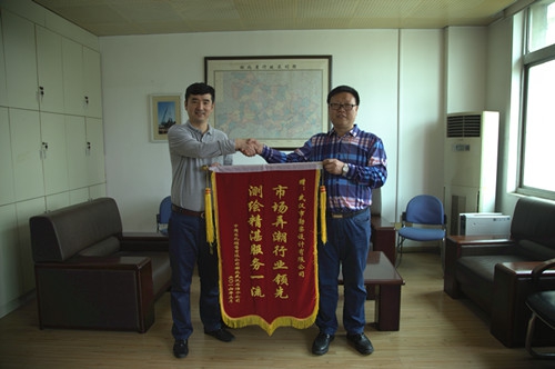 2016年4月12日上午,中國石化銷售有限公司湖北石油分公司將一面“市場弄潮行業(yè)領先,測繪精湛服務一流”的錦旗送到武漢市勘察設計有限公司,以感謝在加油站綠化驗收測量及工程勘察項目中為其提供了優(yōu)質、高效的服務,同時就相關業(yè)務問題進行了交流探討,為下一步開展合作奠定了良好的基礎。(綜合部、測繪工程公司聯(lián)合供稿)