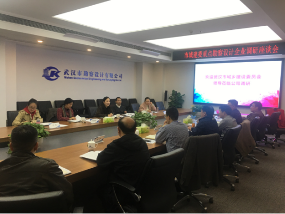 為全面了解武漢市勘察設(shè)計(jì)企業(yè)經(jīng)營狀況,切實(shí)掌握企業(yè)運(yùn)行情況,更好的為企業(yè)發(fā)展服務(wù),3月16日下午,市城建委林琨副主任、設(shè)計(jì)處徐海清處長、設(shè)計(jì)之都發(fā)展中心(審查辦)胡華瑩副主任、海管辦劉婕科長、節(jié)能處明珊科長赴我司進(jìn)行了考察調(diào)研。市測(cè)繪院肖建華院長,公司廖建生董事長、施木俊總經(jīng)理及其他高管層、職能部門負(fù)責(zé)人參加了座談。