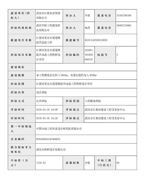江夏區(qū)星光大道道路提升改造工程勘察設(shè)計項目中標簡訊