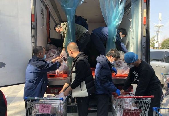 同樣暖心的舉動也發(fā)生在十里景秀社區(qū),3月12日,當(dāng)公司下沉人員了解到社區(qū)居民“買肉難”的情況后,他們馬上動員一切資源,多次跑超市,對接物資事宜,最終爭取到300份“愛心肉”,讓社區(qū)困難家庭吃上了放心肉。